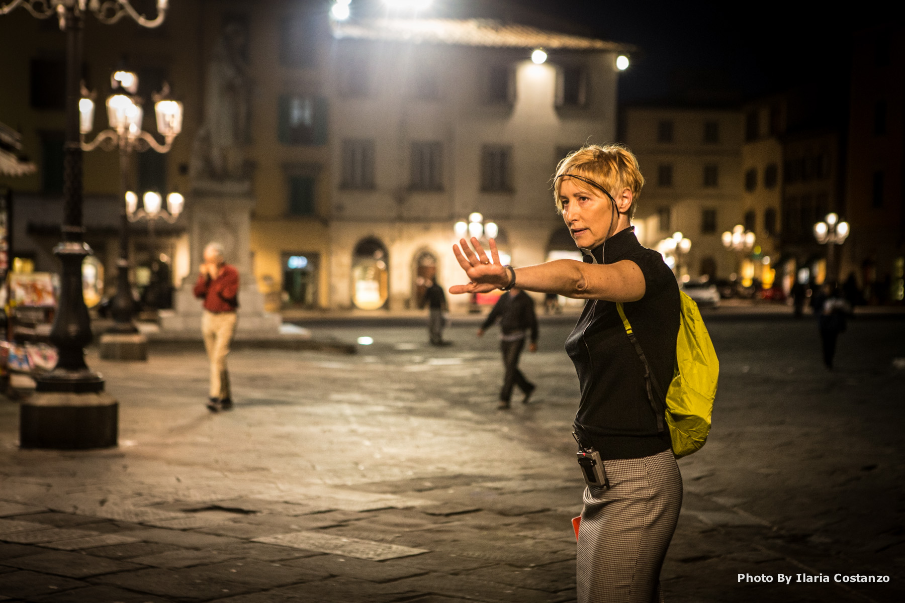 The meeting point is a square where participants will begin to hear the voice of the actress who will guide them through radio guides throughout the traveling performance and lasting about an hour.